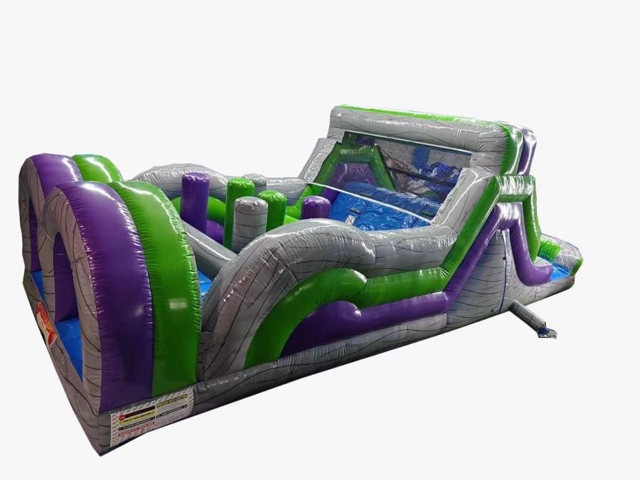 30' Obstacle Course Tunnels, Pop Ups, Logs, Climbing Wall & Water Slide with Pool Wet or Dry