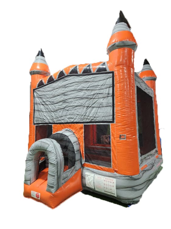 Halloween Castle Grey/Orange Pumpkin Bounce House with Basketball Hoop and Jump