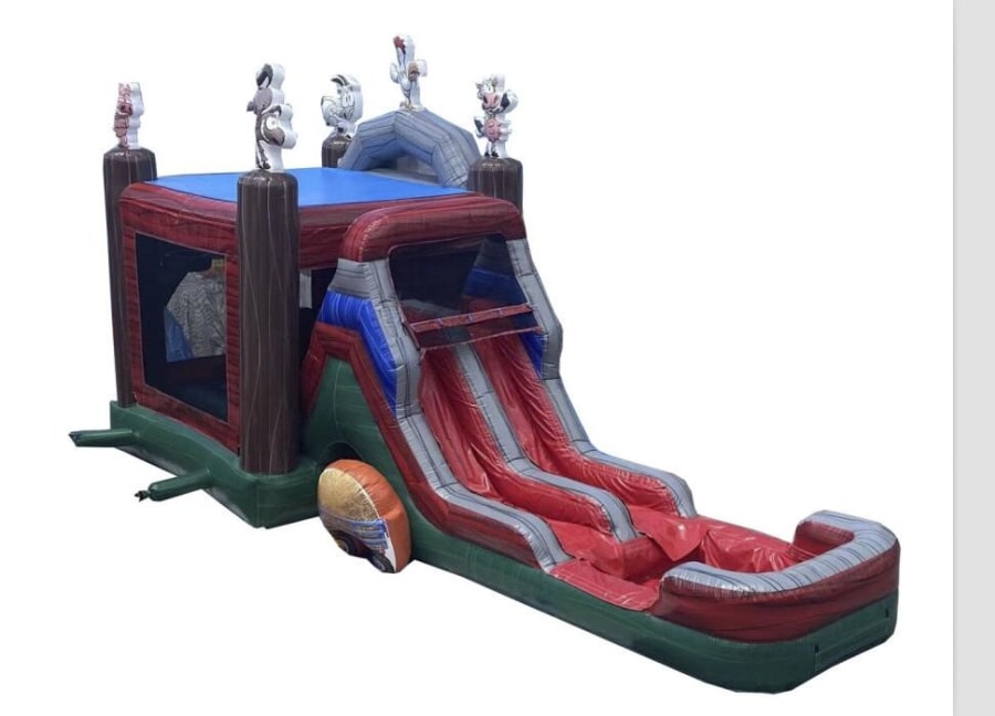 7n1 Farmyard Combo with Double Lane Water Slide & Pool - Wet or Dry
