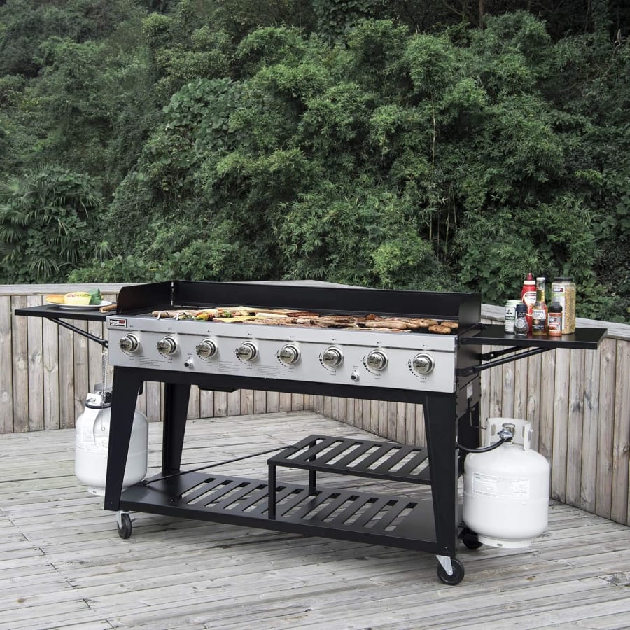 Take the headache away from outdoor cooking and spend more time enjoying the outdoors with your family and friends! Thanks to Royal Gourmet 8-Burner Gas Grill, there’s no event that you can’t reach, and let’s bring it to a picnic, tailgate party or poolside feast! 8 stainless steel tube burners boast an overall 104,000 BTU output! Two gas systems and oil management systems are primed for even the biggest activities, during which you can handle over 60 burgers at once. Start grilling up some gorgeous food for your mouth-watering guests.