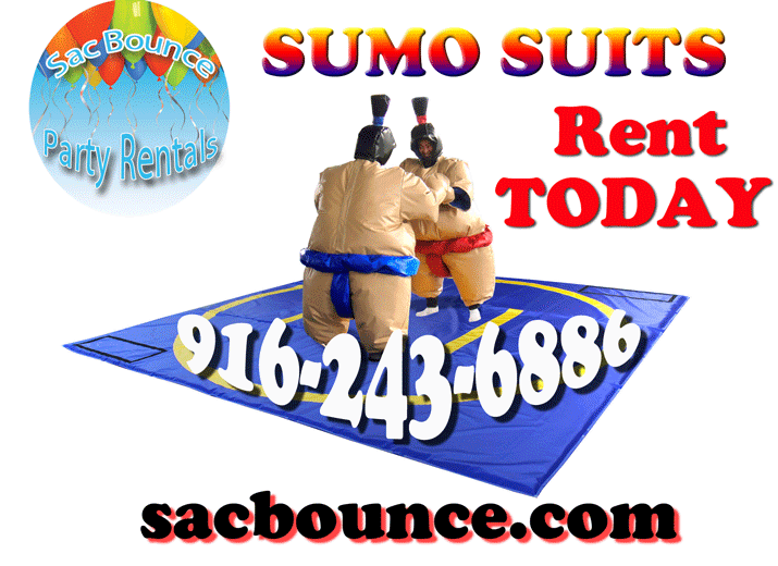 Get inside our Sumo Suits and get ready for the funniest style of wrestling known to man. These are foam-filled Sumo Costume suits, complete with items like the Sumo-style Wig Helmets designed for safety and the Miwashi belt (A.K.A. = Diaper). Half the fun is looking like a 300-pound sumo wrestler. Here’s the rules. Both contestants take off their shoes, don the sumo wrestling suits and wig helmets, and take their place at opposite sides of the sumo wrestling mat. At the direction of the game supervisor, the two sumo wrestlers face-off for the sumo challenge. The contestants try to push, pull, knock-over or wrestle the other sumo opponent off the wrestling mat. Most the time, the sumo wrestlers just have fun bumping and throwing their huge, fat sumo-bodies into each other with laughter and cheers from the sumo crowd. Audiences have as much fun watching as do the participants, making this a great rental for any party.