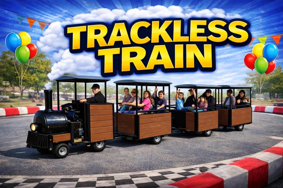 A trackless train is a ride-on attraction that allows guests to enjoy a fun and relaxing ride without the need for tracks.