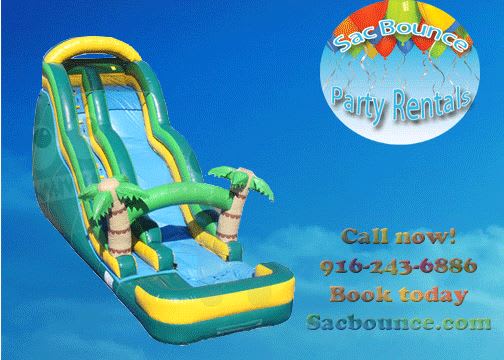 We have inflatable water slides for rent in Sacramento ranging from 12' to 25' tall. We deliver water slides to all of Sacramento, Placer, Yuba, and Placer counties.
